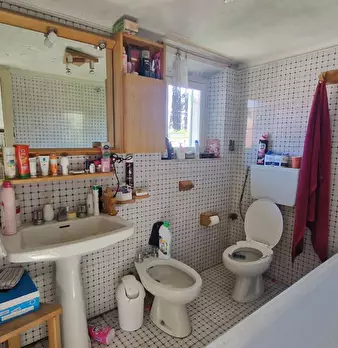 FAUGLIA: In bella posizione panoramica immersa nel verde, casa colonica di circa 330 mq gia divisa catastalmente in due appartamenti con ingresso a comune, cosi composti: Appartamento N 1 ampio soggiorno con camino, angolo cottura e sottoscala, a...