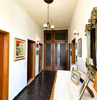 In una zona residenziale centrale, si trova una villetta di due piani, libera su quattro lati e circondata da un giardino con un ampio spazio lastricato di circa 250 mq, recintato e con accesso carrabile. L'abitazione, di circa 165 mq, al primo pi...