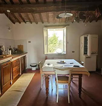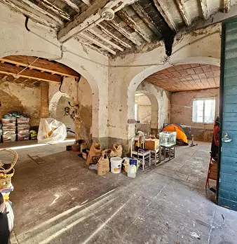 Fauglia. In piccola via del centro del paese, grande porzione di casa, con ingresso indipendente, disposta su più livelli, in buono stato conservativo ma da rivedere, in stile rustico rifinita con travi a vista, così composta: al piano terra un in...