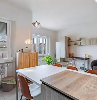 BARBARICINA Luminoso terra-tetto di circa 120 mq, con giardino privato staccato di fronte all’abitazione e posto auto di proprietà. L’immobile è composto al piano terra da un ampio soggiorno con camino e da una grande cucina abitabile, lavander...