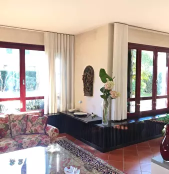 In zona residenziale, terratetto a due piani di circa 180 mq. complessivi, parte di una bifamiliare, libero sui tre lati, con giardino esclusivo e garage di 18 mq. circa. Al piano terra rialzato: ingresso, soggiorno, cucina/pranzo con affaccio su...