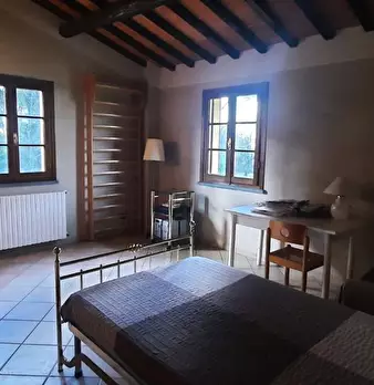 Nella tranquillità della campagna toscana, circondata dall'ampio parco privato, casa a solo libera sui quattro lati su due piani fuori terra. L'immobile è già adattato ad ospitare due nuclei familiari distinti, uno con entrata dall'ampio loggiato ...
