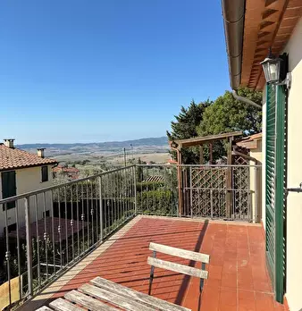 Immagina di svegliarti con una vista panoramica sul lago di Santa Luce e fare colazione sul tuo terrazzo privato, circondato dal silenzio delle colline toscane Questo delizioso appartamento con una camera si trova al piano primo di un residence c...