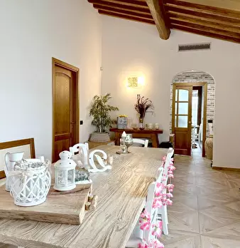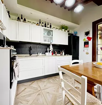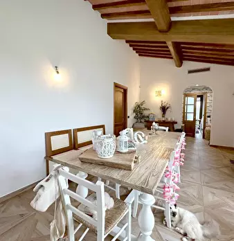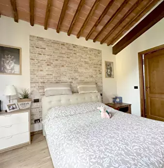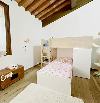 La casa è ubicata fra borghi medievali costituita da due piani al piano terra si trovano due ampie camere matrimoniali di cui una con guardaroba, una singola con piccolo guardaroba e due bagni. Tutte le camere hanno grandi finestre e uscita nel gi...