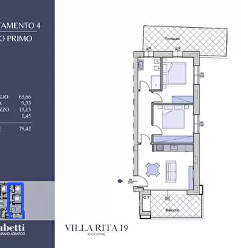APPARTAMENTO MI017/A4 - [PIANO PRIMO] Questo elegante appartamento si trova al primo piano della residenza Villa Rita 19 e si sviluppa su una superficie di circa 79,50mq, offrendo una distribuzione interna funzionale e luminosa. Composizione i...