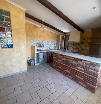 Torvaianica Alta, appartamento ristrutturato, sito al primo piano, con ingresso indipendente, così composto: doppio salone con camino e cabina armadio, ampia cucina abitabile in muratura con relativa penisola, dispensa e travi a vista, due camere ...