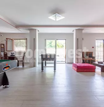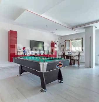 L'agenzia immobiliare Dominvest propone in vendita una prestigiosa villa con piscina, disposta su tre livelli, situata in Via Poggio Ameno, nella zona residenziale di Poggio Fiorito. Piano Terra: L'ingresso si apre su un ampio salone triplo, segui...