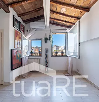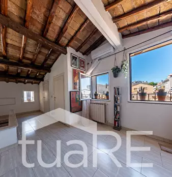 TUA RE Trastevere ad.(Piazza di San Cosimato) MERAVIGLIOSO, SIGNORILE e PARTICOLARE ULTIMO PIANO, unico nel suo genere con SPLENDIDI E CARATTERISTICI AFFACCI PANORAMICI sui tetti di Roma, completamente e FINEMENTE RISTRUTTURATO, splendidi SOFFITTI...