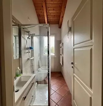 Ad Adria in posizione centrale con ampio giardino e parcheggio condominiale, al piano primo senza ascensore, grazioso appartamento completamente ristrutturato con finiture moderne e composto da ingresso, soggiorno con cucina abitabile open space e...