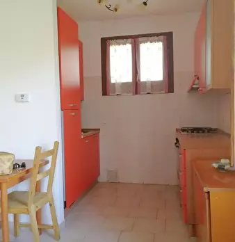 Situato in zona di Fienil del Turco, vendesi appartamento al piano terra composta da: ingresso, soggiorno e cucina open space, camera da letto matrimoniale, camera singola e bagno. Esternamente è presente un ampio scoperto di proprietà e garage. S...