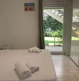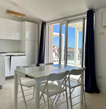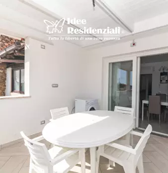 Trilocale completamente ristrutturato ed arredato con soggiorno con angolo cottura due camere una con letto matrimoniale ed una con due letti accoppiati che possono diventare matrimoniale , bagno e terrazza/veranda coperta più una ulteriore terraz...