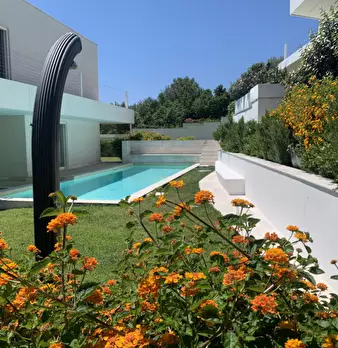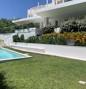 Favolosa villa immersa nel verde della macchia mediterranea con bellissima vista mare ed ampio giardino curato e realizzato da rinomato paesagista La villa in costruzione, con architettura moderna offre ampie vetrate che si affacciano sulla grande...