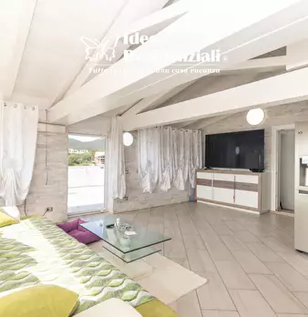 Bellissimo attico con vista mare in località Pittulongu comune di Olbia, a pochi minuti dalla città di Olbia e dai suoi aeroporto e porto in una zona ricca di bellissime spiagge con tutti i servizi a portata pedonale. L'attico si compone di un amp...