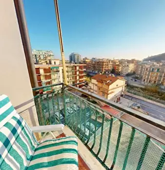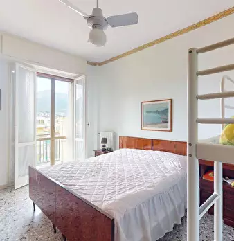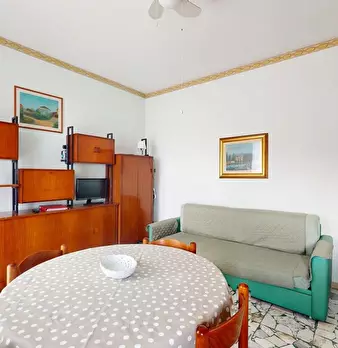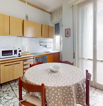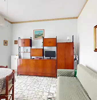In contesto residenziale a 700 mt. dal mare TRILOCALE al piano primo ingresso su soggiorno spazioso e luminoso grazie alle ampie finestre dotate di persiane, monoblocco cucina a vista attrezzato di elettrodomestici, ampio balcone vivibile ester...