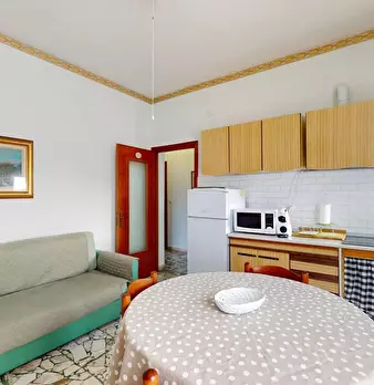 BILOCALE al piano ammezzato in piccola palazzina, ingresso su soggiorno con angolo cottura separato, disimpegno, camera, bagno con ventilazione forzata e ripostiglio. L'appartamento ha un'unico affaccio sulla corte esterna ed è privo di arredament...