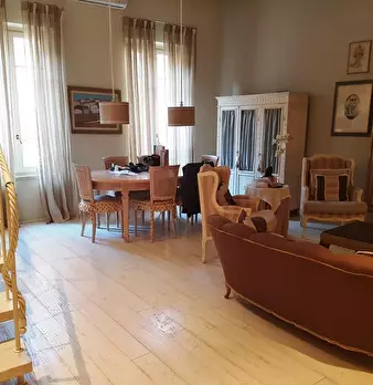 In villa restaurata, bellissimo appartamento di circa 160 mq. disposti su due piani e composta da ampio salone, cucina abitabile, tre camere, doppi servizi. Parco condominiale e giradino privato non collegato . Ampio garage finestrato