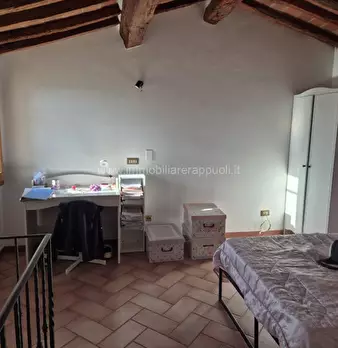 Sinalunga vendesi in zona centrale casa singola composta da due appartamenti posti al piano primo: il primo appartamento è di 115 mq, composto da ingresso, salone con caminetto e terrazza, cucinotto, 2 camere, 1 bagno con vasca e doccia, al piano ...