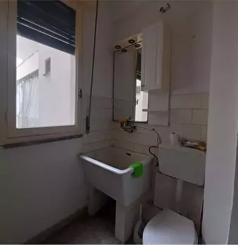 La casa ha ingresso, ripostiglio, grande salone con accesso al balcone, corridoio, bagno principale con vasca e finestra sul pozzo luce, doppio servizio con doccia e finestra sul pozzo luce, cucina abitabile con accesso al balcone (comune al salon...