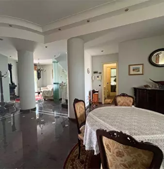 La casa ha un grande disimpegno d'ingresso con ripostiglio, una camera con balcone esclusivo (attualmente adibita a salotto), spazioso corridoio, ampio salone di 46 mq con due accessi e balcone esclusivo, cucina abitabile con balcone verandato, ba...