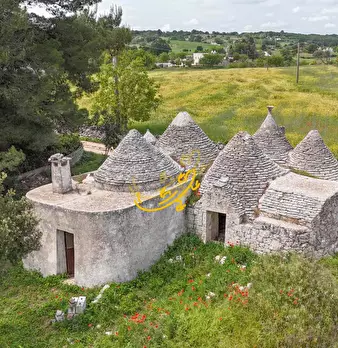 Martina Franca - Contrada Cuoco In una splendida posizione tra Martina Franca e Ceglie Messapica, proponiamo in vendita un affascinante complesso di trulli e lamie immerso nella quiete della campagna pugliese. La proprietà sorge in zona isolata, i...