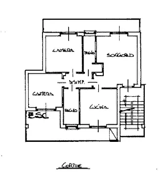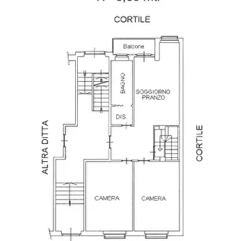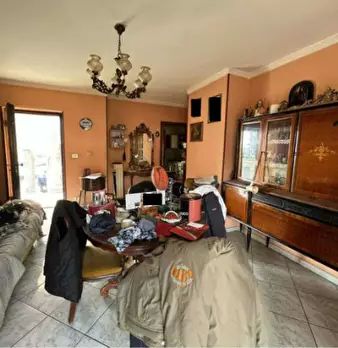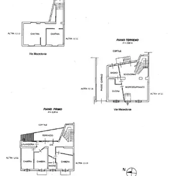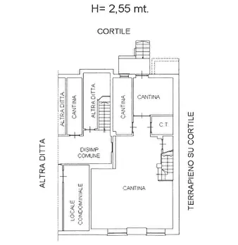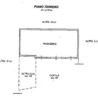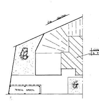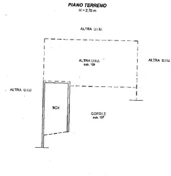 alloggio al piano primo (2° f.t.) con accesso dalla scala esterna, composto di ingresso, soggiorno, cucina, due camere e servizi ed annessa cantina, al piano interrato; mq. 115 - autorimessa privata al piano interrato; mq. 94 - porzione residuale ...