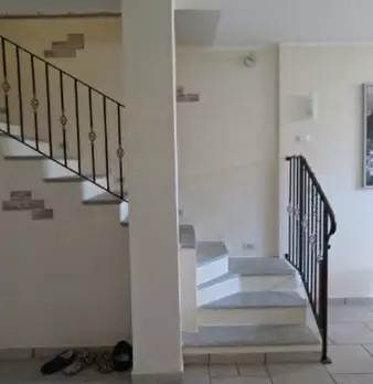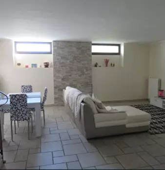 Al piano rialzato (primo fuori terra), appartamento composto da ingresso, soggiorno-pranzo, due camere, disimpegno, bagno, scala interna collegante con il piano seminterrato e balcone; Al piano seminterrato, tre locali a uso cantina adiacenti e va...