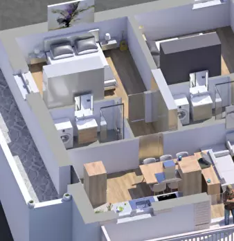 L’abitazione, posta al piano terra e caratterizzata da un’eccellente luminosità, si compone di: - ingresso con terrazzo privato - ampia camera matrimoniale - bagno con disbrigo - zona giorno luminosa con cucina open space - poggiolo Plus e comfor...
