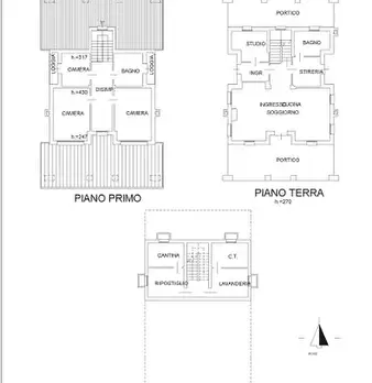 Villino unifamiliare composto da: cantina, ripostiglio, lavanderia e centrale termica al piano primo sottostrada; ingresso-cucina-soggiorno, stireria, secondo ingresso, studio, bagno e due portici al piano terra; tre camere, disimpegno, bagno e du...