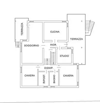 Villino composto: ingresso, cucina, soggiorno, disimpegno, due camere, ripostiglio, bagno, studio e due terrazze al piano terra; disimpegno, cantina, lavanderia, bagno, magazzino, deposito e centrale termica al piano primo sottostrada; annessa cor...