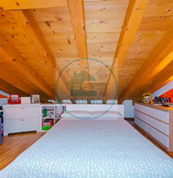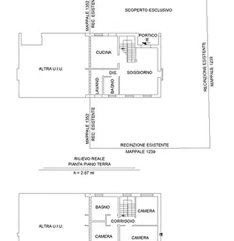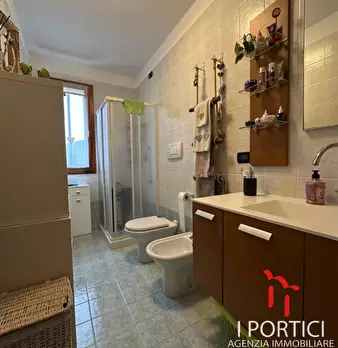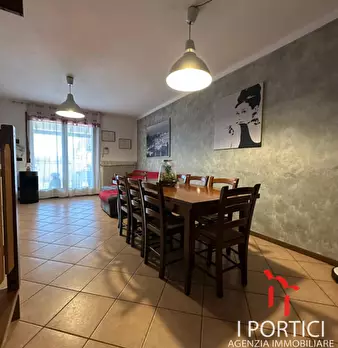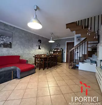 Porzione di bifamiliare, due piani, con scoperto privato di circa 250 mq. L'abitazione al piano terra: soggiorno, cucina, lavanderia, wc, portico coperto e pergola; al piano primo n. 3 camere, bagno, corridoio e loggia. Completa il compendio pigno...
