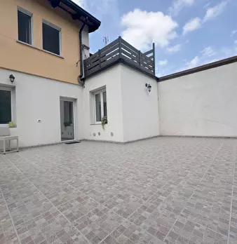 Interessante questo MINIAPPARTAMENTO, 64mq, con una terrazza pazzesca, 14mq, in pieno cento a Terzo d'Aquileia sito al primo piano servito da ascensore. Entrando ti accoglia l'ampia zona giorno con la cucina e la sua sala da pranza, comunicante co...
