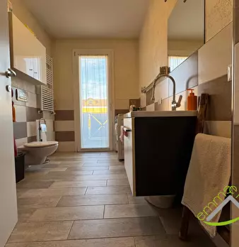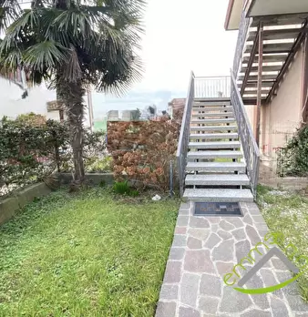 Interessante appartamento sito al piano primo ed in posizione d'angolo, con giardino di proprietà, su contesto residenziale di sole 4 unità con una superficie totale di 84 mq, composto da ingresso, soggiorno con cucina a vista, 2 camere, 2 bagni, ...