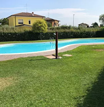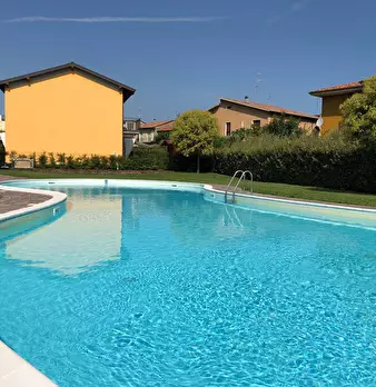 Peschiera del Garda, in piccolo residence con piscina, immerso nel verde e con incantevole vista lago, proponiamo un appartamento trilocale composto da: entrata, ampio soggiorno con cucina, camera matrimoniale, camera singola, bagno, ampia terrazz...