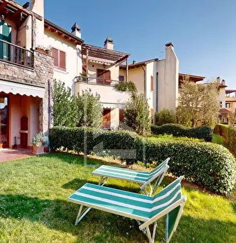 Rif: PR-024-101 Trilocale di testa con grande portico e giardino libero su tre lati, all'interno del Garda Resort Village con magnifica esposizione al sole; uno splendido residence con un enorme parco, piscine, ristorante e una vasta gamma di str...