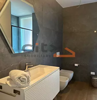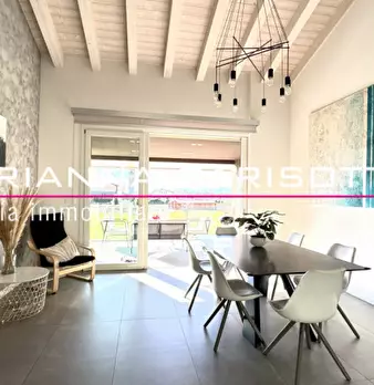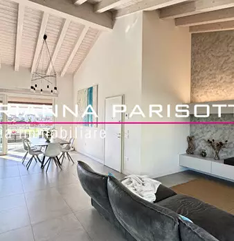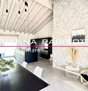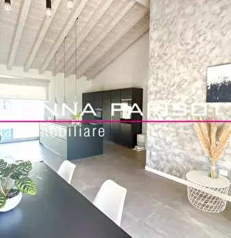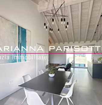 Ns. Esclusiva: Immaginate una meravigliosa mansarda ipertecnologica che non scenda a compromessi, dove il design minimalista incontra il calore di un soffitto alto con travi in legno sbiancate, i volumi degli spazi esaltati dalla grande luminosità...