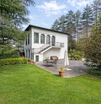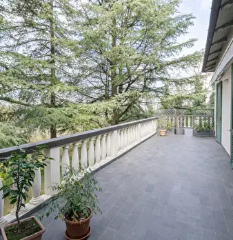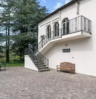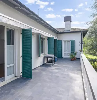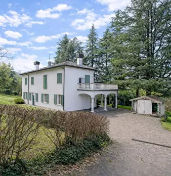Porzione di villa bifamiliare con giardino, vista sui colli e firma d’autore In una posizione privilegiata, immersa nel verde ma comodamente servita, proponiamo un’ampia porzione di villa bifamiliare con giardino privato, balcone panoramico e spl...