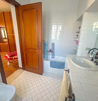 Elegante villa bifamiliare in zona riservata e comoda al centro del paese. Soluzione abitativa quadrilocale al piano rialzato dalle metrature introvabili composta da accogliente ingresso, luminoso e ampio soggiorno con pavimentazione in marmo, cuc...