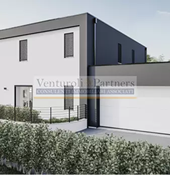 Villa al piano terra composta da ingresso , soggiorno, cucina abitabile, tre camere da letto matrimoniali, bagno, due balconi e giardino privato. Al piano interrato ha garage doppio cantina e taverna Scopri questa splendida bifamiliare situata n...