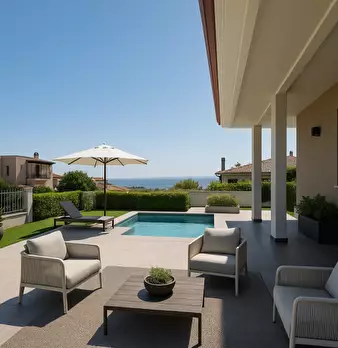 Quartu Sant’Elena- zona Capitana – Porzione di villa panoramica a pochi minuti dal mare Nel cuore della Sardegna meridionale, dove il blu del cielo si fonde con quello del mare, sorge una villa bifamiliare dal fascino autentico, che domina il Golf...