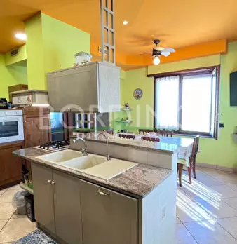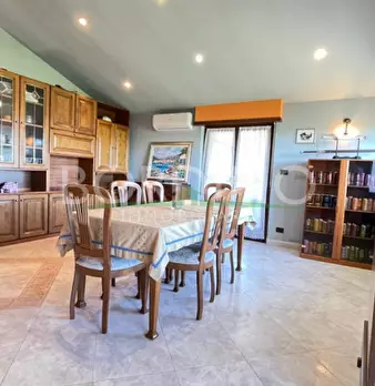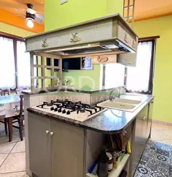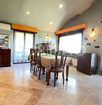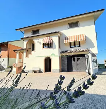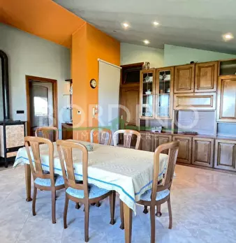 Bel fabbricato di recente ristrutturazione composto di ampia tavernetta, cucina, bagno, ripostiglio, centrale termica e portico al piano terreno e da 4 camere, ripostiglio e bagno e cantina al piano interrato; sono inoltre presenti due autorimesse...