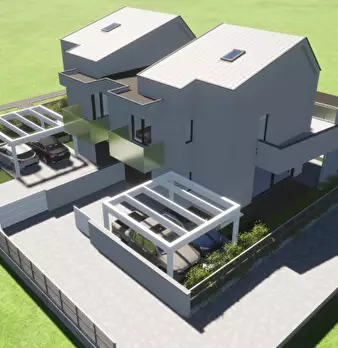 Cesena, zona ospedale, in luogo tranquillo ma a pochi passi da tutti i servizi, nuova bifamiliare classe A, totalmente finita esternamente e allo stato grezzo internamente; composta piano terra da: cucina, sala, bagno e garage; al piano primo tre ...