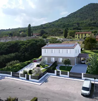 Proponiamo porzione di bifamiliare inserita armoniosamente nel paesaggio dei Colli Euganei. La soluzione presenta le seguenti caratteristiche: - SPAZI FUNZIONALI: zona giorno di circa 40 mq, bagno e lavanderia. Al piano superiore tre camere da let...