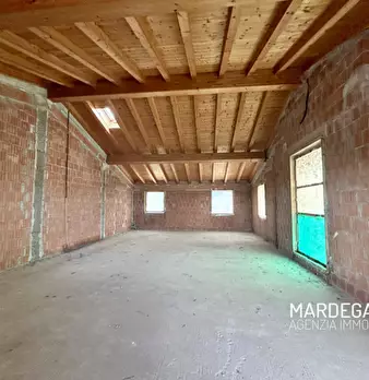Situata nella frazione di Campagnalta, nuova porzione di bifamiliare composta di: ingresso, soggiorno con angolo cottura di 51 mq, due bagni, lavanderia, due camere, disimpegno, ripostiglio, poggiolo, portico, mansarda di 39 mq, garage di 24 mq co...