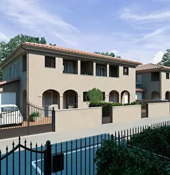 PONTEDERA- Via Della Bianca, prossima costruzione di ville bifamiliari con giardino privato e garage. La villa si compone al piano terra da loggiato con ingresso in ampio soggiorno, grande cucina abitabile, bagno, garage oltre patio per cene all'a...