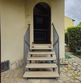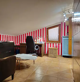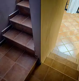 La porzione di villetta bifamiliare è distribuita su due livelli, attualmente di fatto separati in due distinte ed autonome unità immobiliari con rimozione della scala interna di collegamento, cucitura del solaio e realizzazione di una scala ester...