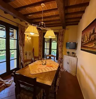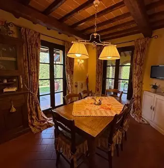 Nelle splendide campagne di Fucecchio, inserita in un elegante borgo colonico completamente ristrutturato, è proposta la vendita di una colonica libera su tre lati in bifamiliare. La residenza, arricchita da un grande e curatissimo giardino, è cos...