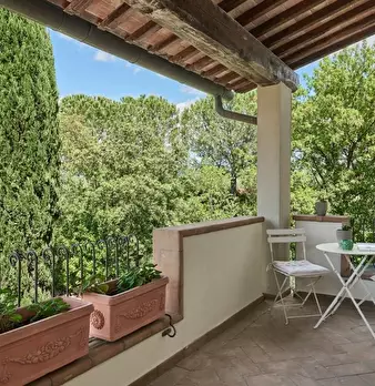 VINCI COLLINARE, in bellissima zona verde e molto panoramica, in caratteristico borghetto toscano posto sulle colline di Vinci nei pressi della casa Natale di Leonardo da Vinci, porzione di casale suddivisa in 2 unità immobiliari. Il casale è com...