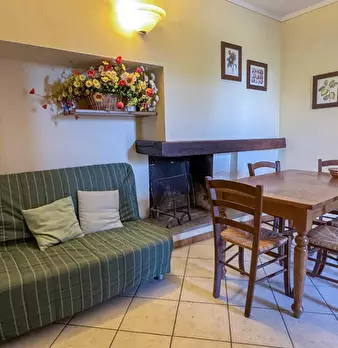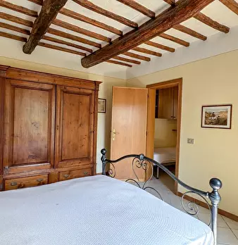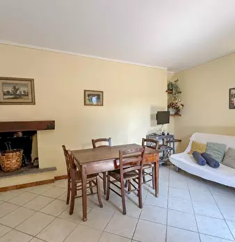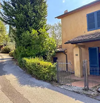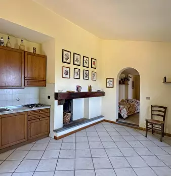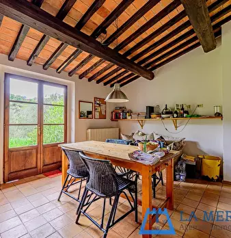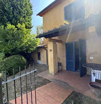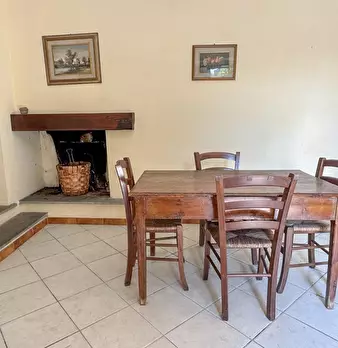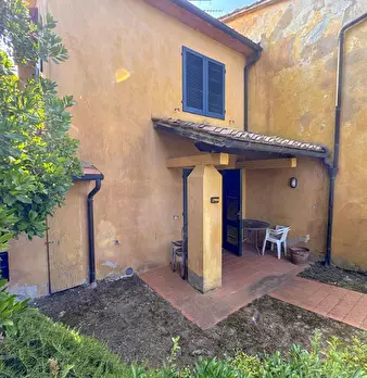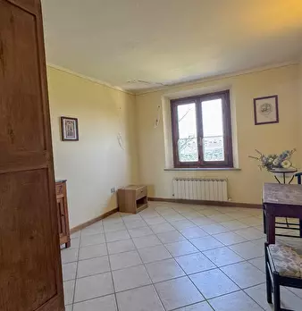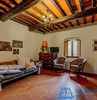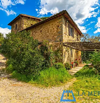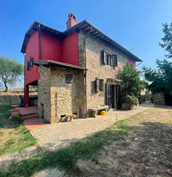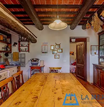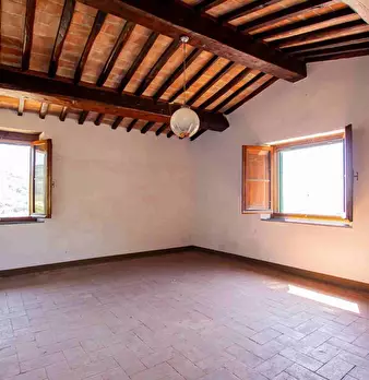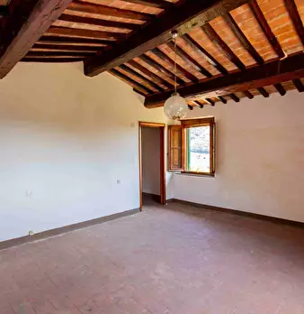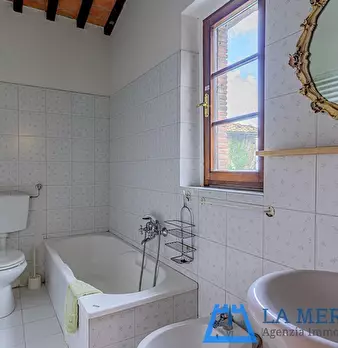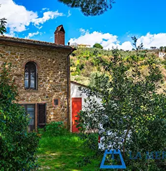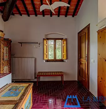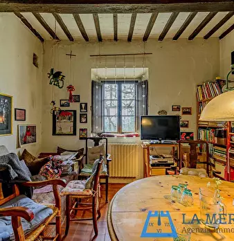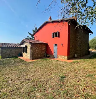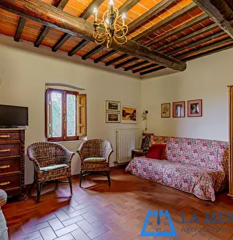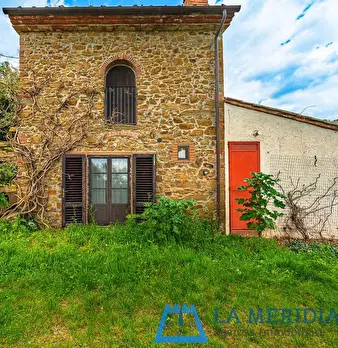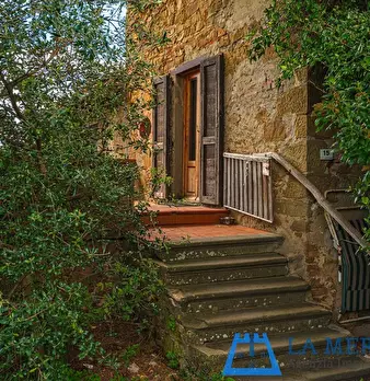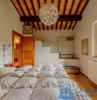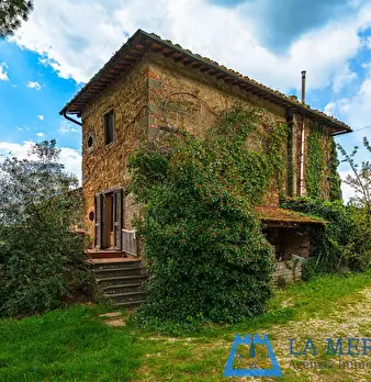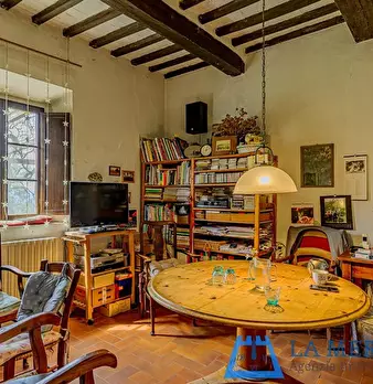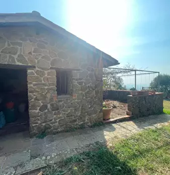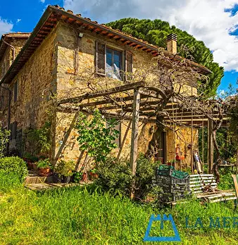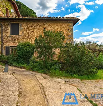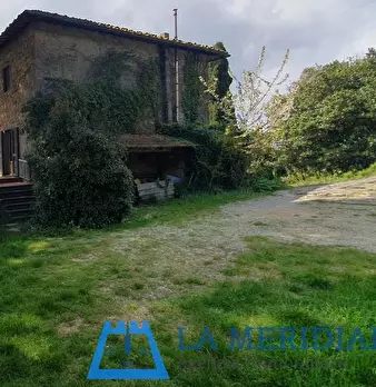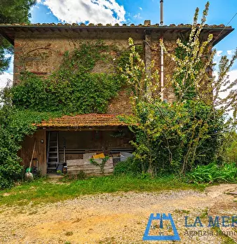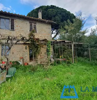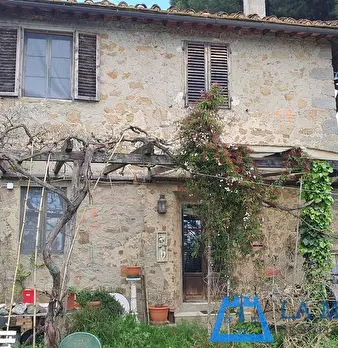 LARCIANO COLLINARE, in bella zona verde e panoramica, in caratteristico borghetto toscano, porzione angolare di CASALE in pietra con accessori, giardino e circa 10 ha di terreno. Il casale è composto da ingresso, cucina, soggiorno, bagno al piano...