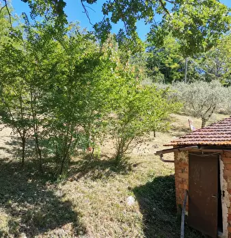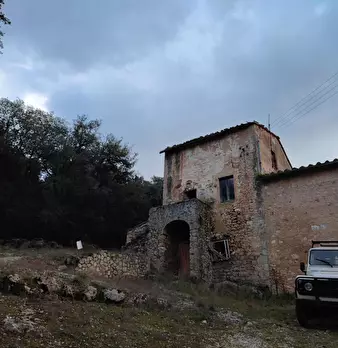 In campagna, adagiato sulla collina circondato da oltre 7 ha. di terreno, casale indipendente composto da un corpo principale su due livelli per complessivi 240 mq. di superficie, una capanna indipendente di circa 75 mq. , un annesso (porcilaia) d...
