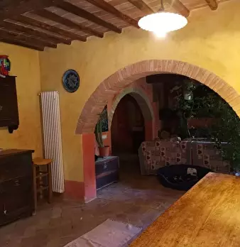 CAPOLUOGO - San Gimignano In posizione collinare, immersa nel verde della campagna di San Gimignano, a circa 3 km. dalla città, porzione di casale tipicamente toscano di circa 270 mq. di superficie ( sui 500 mq. circa dell'intera proprietà) il t...